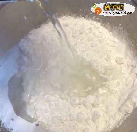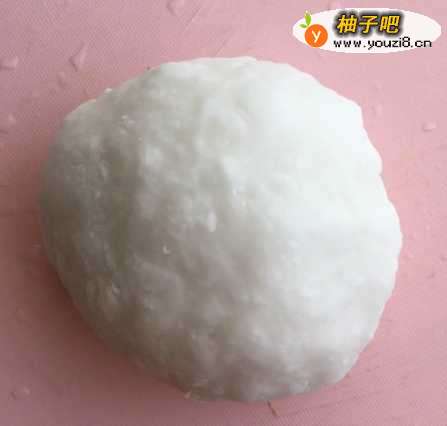 3在碗中放入适量的淀粉,加适量的开水,揉成面团;