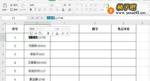 姓名和数字结合在一个单元格中,如何将其一分为二,下面介绍一下操作步骤