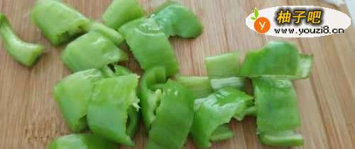 2把准备好的火腿肠切成片、辣椒、葱切成段备用