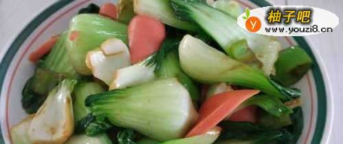 油菜中含有丰富的钙、铁和维生素C,胡萝卜素等营养也很丰富,对人体健康有好处。“什锦小油菜”主要的食材:油菜、辣椒、火腿肠等食材制作而成。