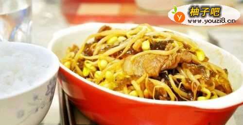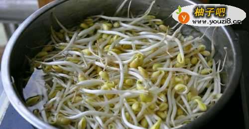 黄豆芽在水里淘一下,控水,开水泡粉条