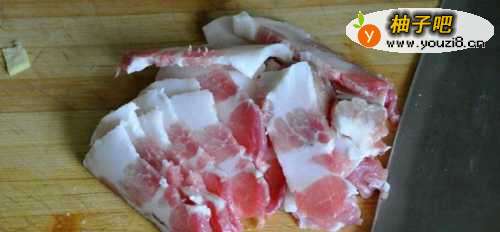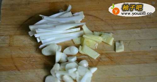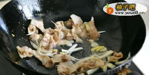 4起锅油热,放入肉片,变色后放葱姜蒜。
