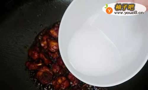6待汤汁快要收干时,我们淋入一汤匙水淀粉,再顺着锅边淋半汤匙香醋提味即可。