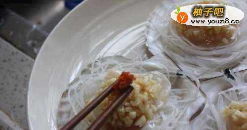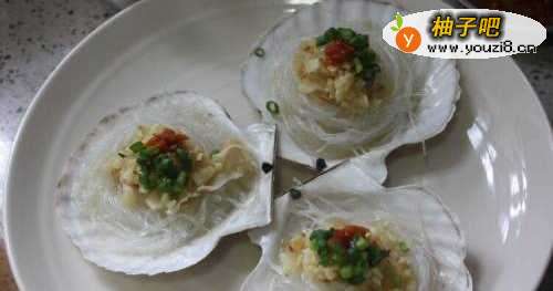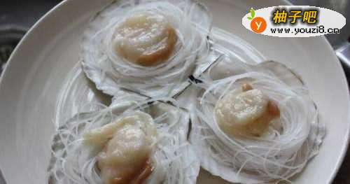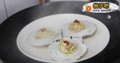 5再将扇贝肉摆放在粉丝上