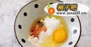 4混合面粉,淀粉,泡打粉,鸡蛋等面糊材料(不喜欢辣的,香辣粉等香料可以不放)