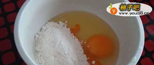 3之后,我们再来做鸡蛋饼。我们把鸡蛋打散到盆里,倒入一小碗面粉,搅拌均匀,太浓稠的话,就加些水进去,要稀薄些,搅到没有小疙瘩为止。再加一小勺盐。