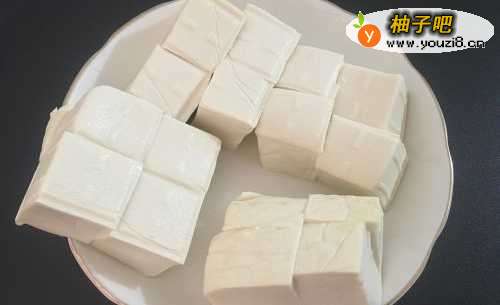 3、豆腐切块、洗净,蔬菜水煮熟,控水备用;