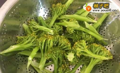 4可以准备一点蔬菜,我准备的是西兰花,先水煮熟,控水备用。