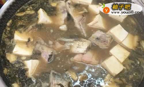 7、然后放入豆腐和鱼,先烧开,再中小火炖15-20分钟;