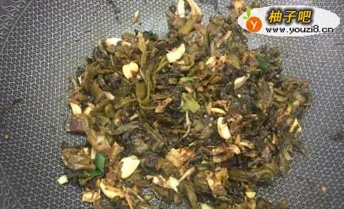 6然后放入酸菜包、调味酱包,翻炒均匀。