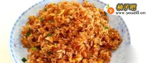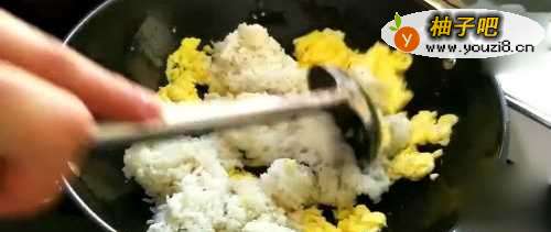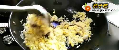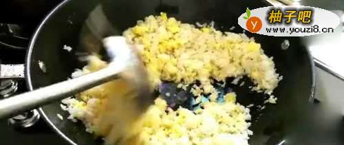 4等鸡蛋炒得差不多的时候加入米饭,如下图所示。