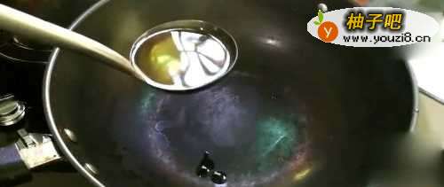 7然后再向锅里面加入一点辣椒油,如下图所示。