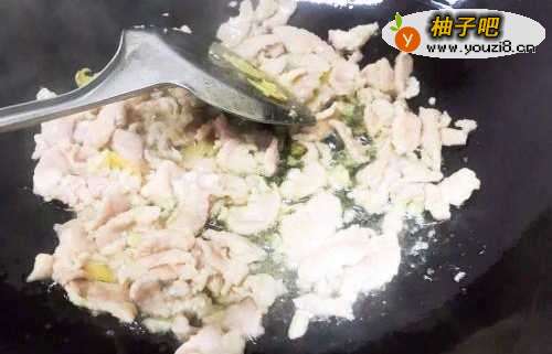 3起锅烧油,油热倒入猪肉翻炒,炒至肉变色盛入碗中;
