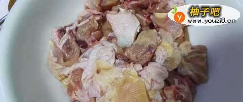 将鸡肉洗净加入姜片、料酒、食盐、淀粉,搅拌均匀,然后,放置20分钟备用