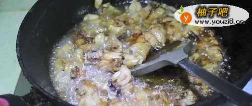 3然后热锅上油,然后将鸡肉倒入油锅炸制