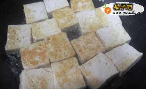 3用剩下的油将豆腐煎得两面金黄。