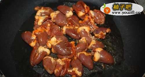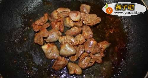 6将鸡心煎熟。