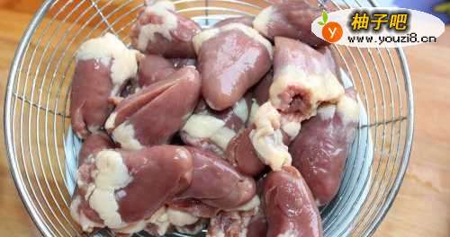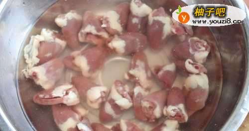 先将鸡心洗干净。