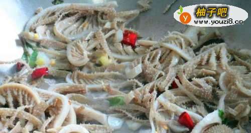 5再倒入牛百叶翻炒均匀,1分钟即可