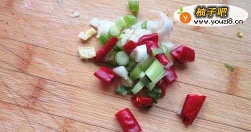 3葱姜蒜和干红辣椒洗好,葱切葱花,蒜切片,姜切小块,干红辣椒切成段