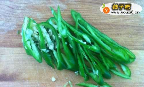 3尖椒清洗干净,切丝,猪肉切丝,切少许葱花,装盘备用。