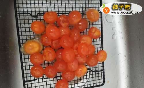 3第三步:找一个小格式架子,将咸鸭蛋敲碎放到架子上面,使蛋黄与蛋清分离,如下图所示。