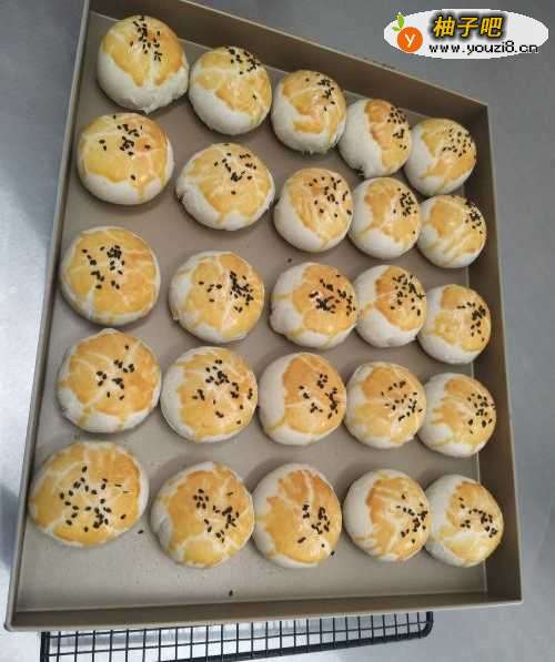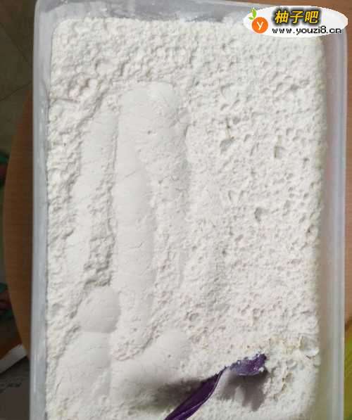6第六步:咸鸭蛋黄烤好后拿出来放凉,然后准备面粉就可以制作蛋黄酥了,如下图所示。