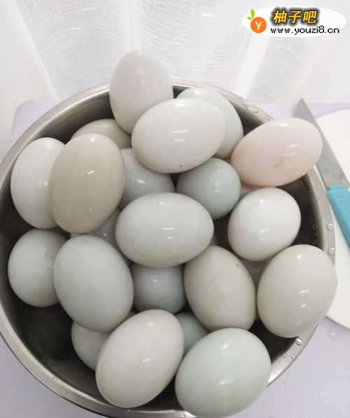第一步:到市场或超市买回30个咸鸭蛋,数量的多少可以根据自己所需要的实际情况购买,如下图所示。