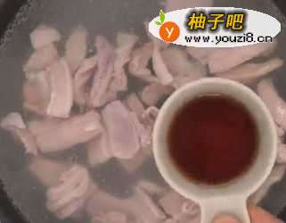 3水烧开之后,放入切好的五花肉和料酒,煮熟后捞出备用