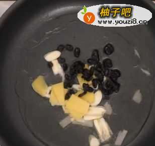 5油热后放入蒜片,姜片,豆豉,炒出香味