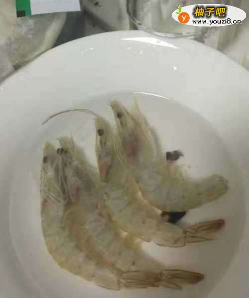4大虾冲洗干净后,将后背用刀切开,挑去虾线,放到碗中备用。
