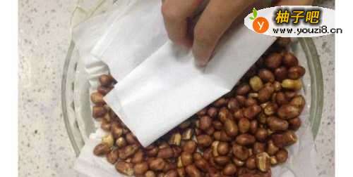 我用的是生花生,所以先加入一丢丢橄榄油幵始炒花生。炒熟后,用紙巾把外居油吸掉。