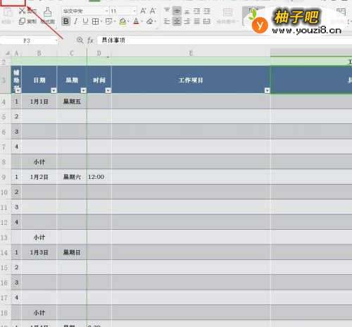 2点击表格菜单栏的【文件】;