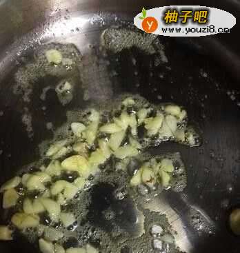 2放入切碎的大蒜小火煸至微微焦黄。