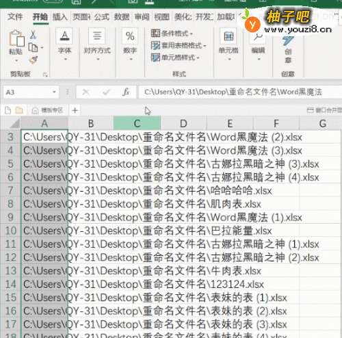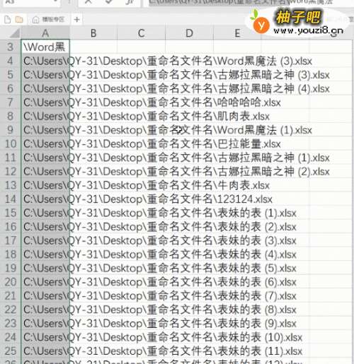 我们会发现文件的名称全部在最后面,前面到一直到 重命名文件夹 都是多余的部分。
