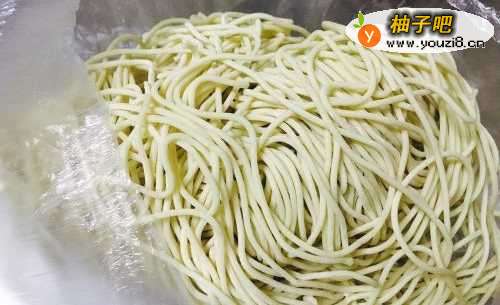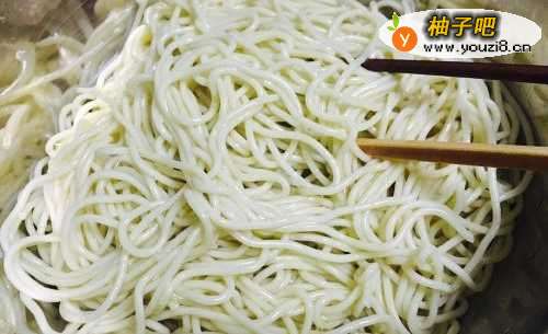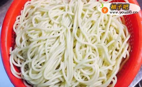 2面条煮好之后捞出来放在提前准备好的冰白开水中泡一会。
