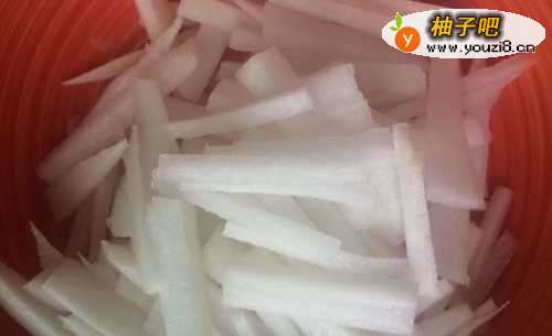 2白萝卜去皮,切丝备用