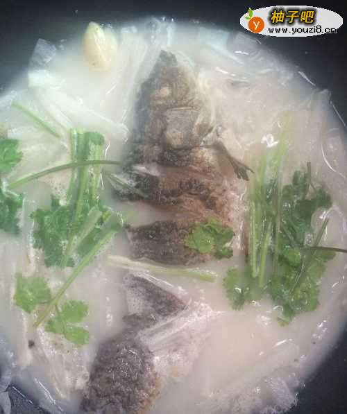 4倒入开水,没过鱼身即可(鲫鱼比较多刺,选择只喝汤不吃肉的可以多加水)。大火,煮至水开5分钟。倒入白萝卜丝,转中火煮10分钟。