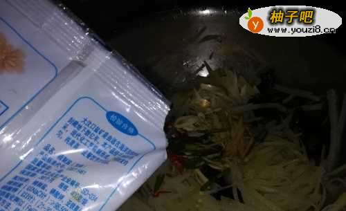 4倒出盆中的凉水,开始放佐料凉拌,现将之前切好的蒜姜辣椒等放进去。