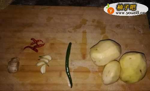 准备好食材:土豆洗净削皮,姜、蒜、辣椒等洗净,木。耳提前用水泡好
