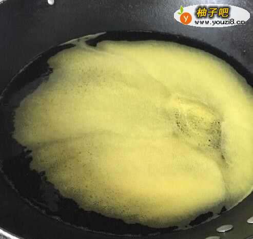 4倒入菜籽油待油泡散尽关火降低油温倒入牛肉条小火炸5-8分钟。