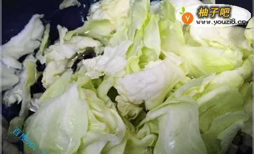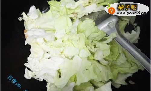 加入前面洗干净的包菜叶,转大火快炒。