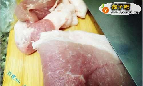挑选一块肥中带瘦的肉,比如五花肉/三层肉,这些都可以,根据有的素材自己选择。
