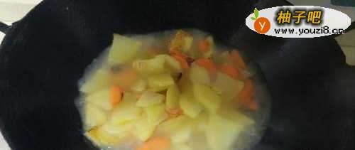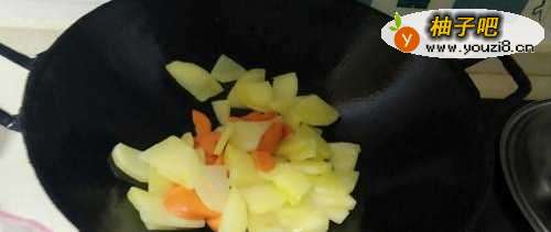 3再加入切好的胡萝卜片。