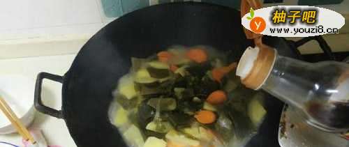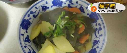 5加上泡发好的海带片。