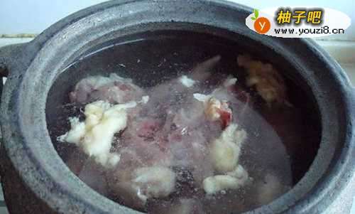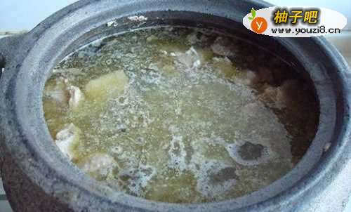 3鸡肉放进砂锅里,加入清水,料酒,姜片,宙墨煮出血水后撇去浮沫;