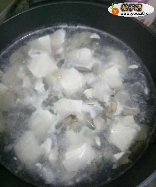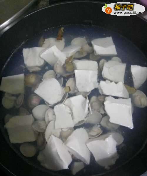 5待花蛤煮到半开的时候,就可以将豆腐下入锅里;