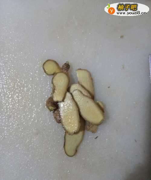 取一块姜,洗净切片;