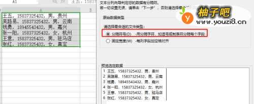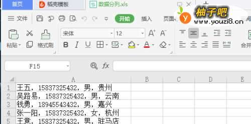 步骤一:公司部门要统计统计员工姓名,联系方式,性别和来自省份,如图现在有文本数据,使用逗号分隔,我们要将数据分列显示,一列统计一个维度。