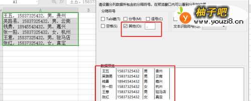 4步骤四:分隔符号选择其他,空格框输入中文逗号(逗号分中英文),在数据预览中我们可以看到分隔效果,点击下一步。